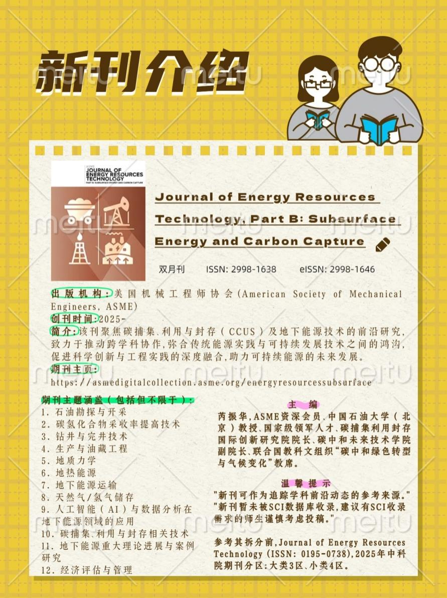 全球能源格局正在发生深刻变革,碳中和目标加速推动能源技术创新。为满足能源领域多元化的研究需求,ASME《能源资源技术期刊》(Journal of Energy Resources Technology, JERT)现已拆分为两大子刊: